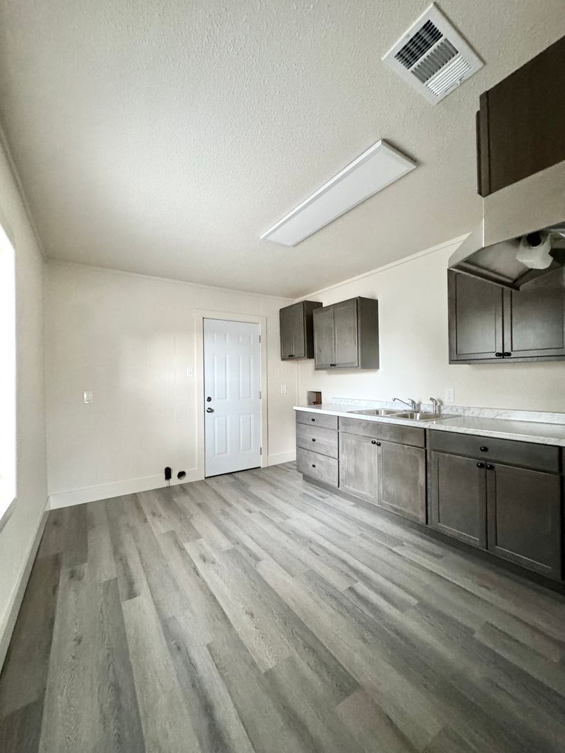 Step into comfort and style in this beautifully updated home featuring a stunning new kitchen complete with stainless steel refrigerator, oven, and vent hood. Modern gray cabinets and refreshed countertops create the perfect space for cooking and gathering.